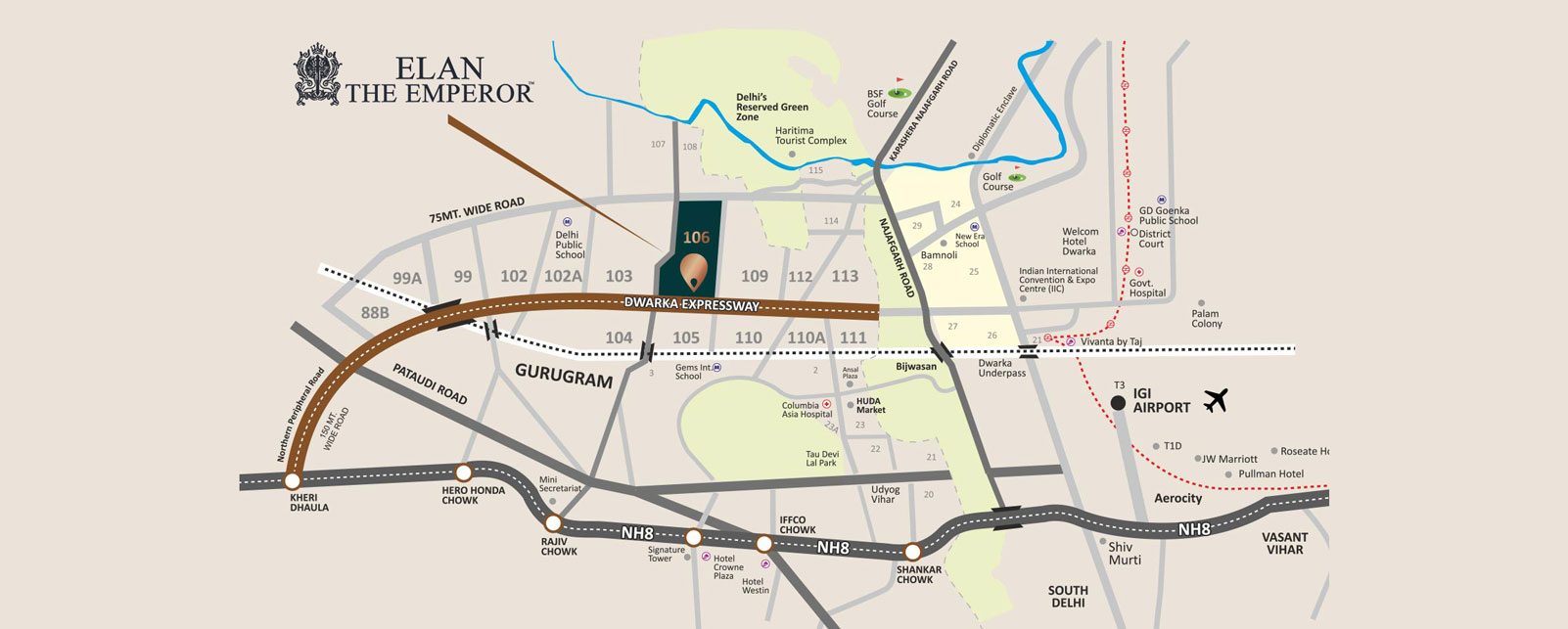 Elan The Emperor is a prestigious luxury residential project offering exquisite 4 and 5 BHK apartments in Sector 106, Dwarka Expressway, Gurgaon. Designed for those who seek elegance and sophistication, this premium development boasts top-notch amenities, ensuring a lifestyle of comfort and exclusivity. Strategically located in one of Gurgaon’s most sought-after areas, Elan The Emperor provides seamless connectivity to major hubs, business districts, and the Indira Gandhi International Airport. The project features world-class architecture, state-of-the-art facilities, lush green landscapes, and premium recreational spaces, making it an ideal choice for homebuyers and investors looking for opulence and convenience in the heart of Gurgaon.